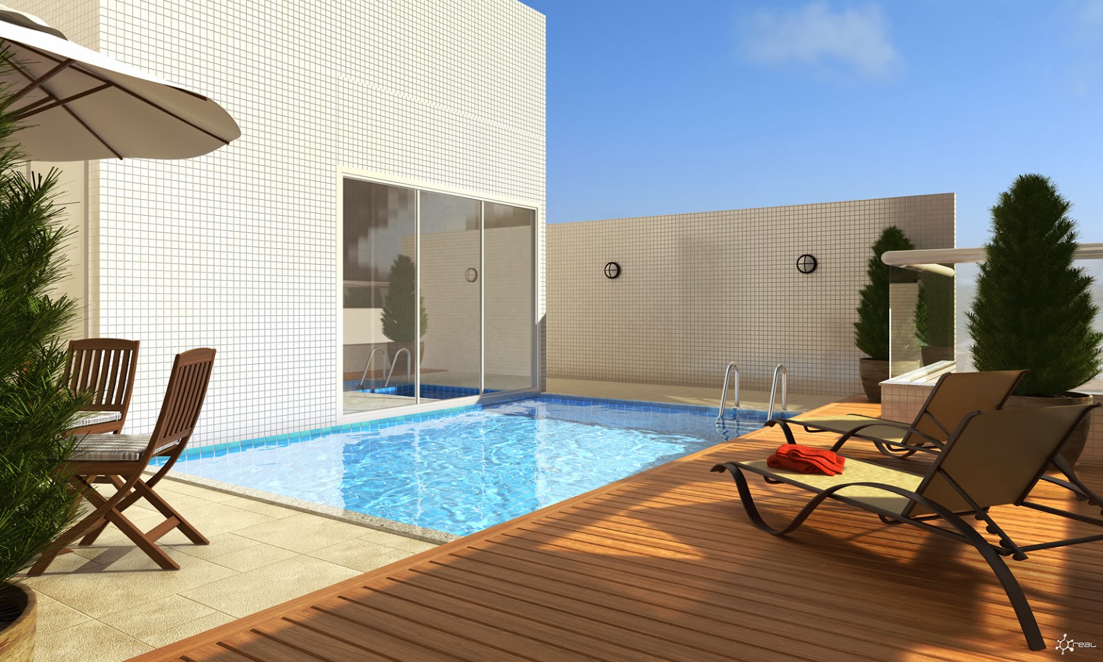 Lazer integrado a cobertura com piscina, sauna, churrasqueira, salão de festas